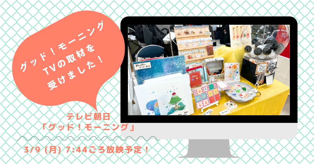2026年2月21日に出店した「文具マーケット」にテレビ朝日「グッド!モーニング」さんが取材に入っており、takarabacoのブースにもお立ち寄りいただきました!